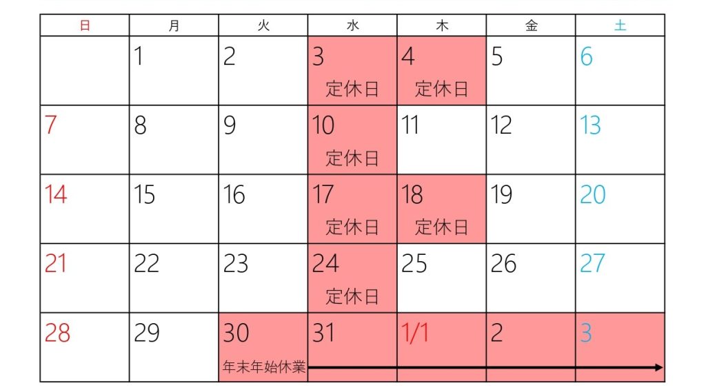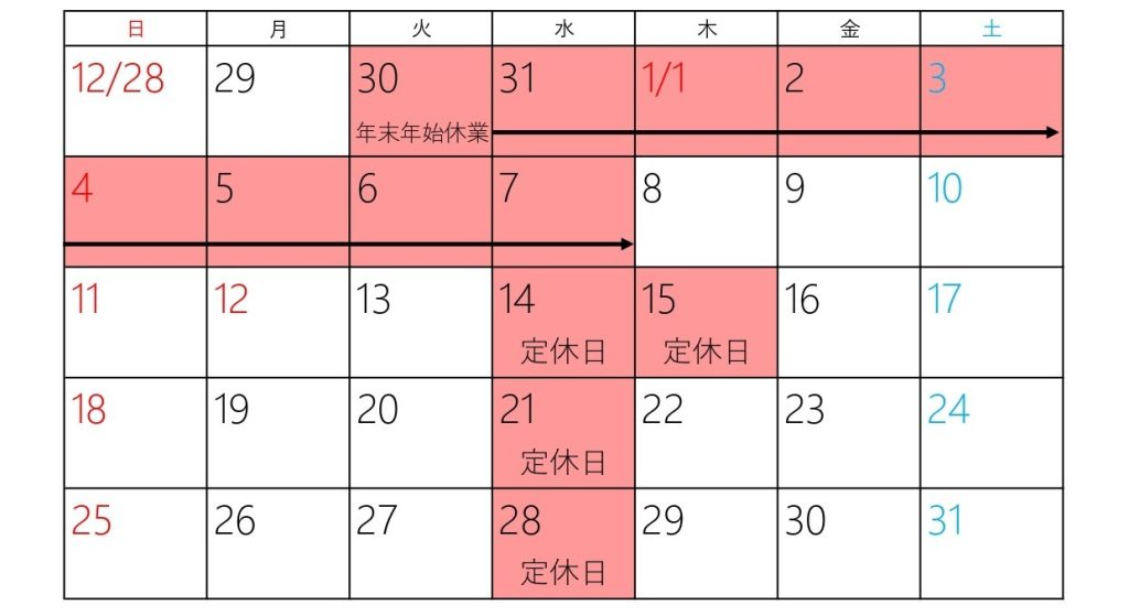 ※尚、年内の営業日は 12月29日(月) 12:00まで とさせていただきます。