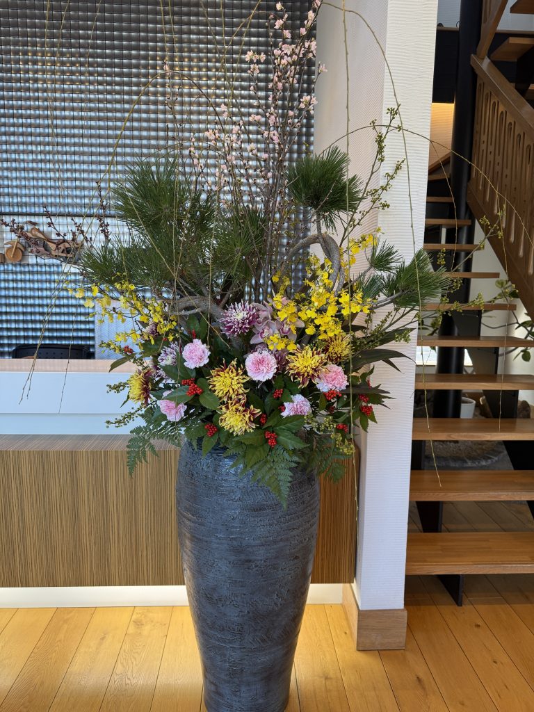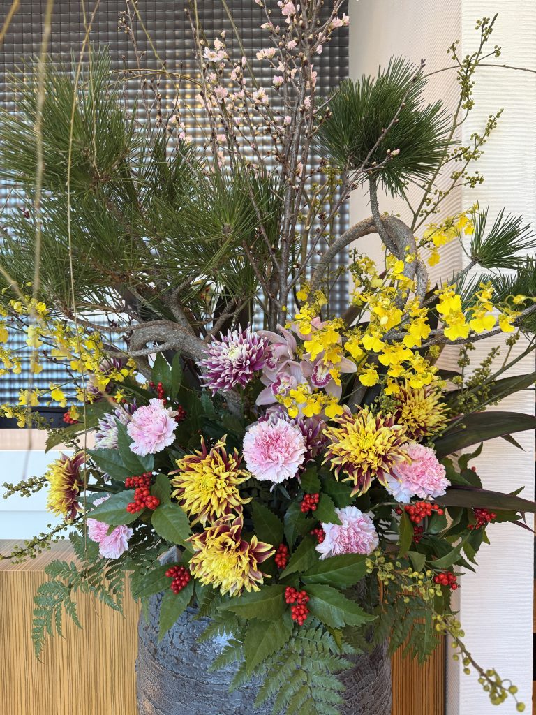 今年もフラワーハウスワタナベ様に素敵な花飾りを準備していただきました。